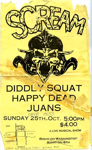 To have a Scream from D.C. play in pasco was unbelievable. It was in some random warehouse in pasco, but that didnt matter. The show was great. Someone from the Tri Cities Vocational School filmed the show. It would be fun to find that video. Destiny? Nate Medel bass player from didley squat and Dave Grohl drums for Scream went on to play together in Foo Fighters.